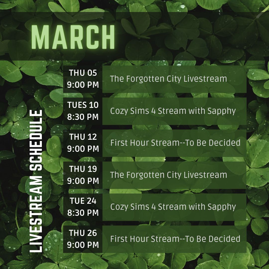 Below is our streaming schedule for the month of March.