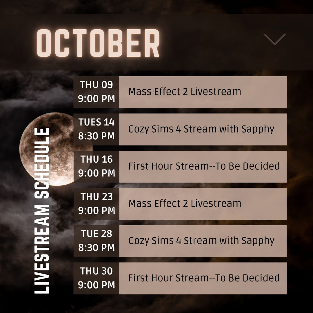 Don’t make deals with the fae, avoid bridges with headless horseman, and be wary of people who lick their lips while staring at your neck. Survive the horrors until next month when you’ll receive more updates and ramblings written by… me. 💜